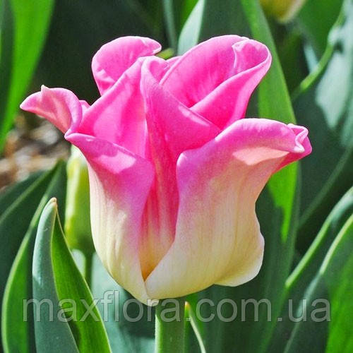 Тюльпан Crown of Dynasty (Кроун оф Дінасті) - сорт з унікальною формою келиха. У бутоні більше схожий на бутон троянди, ніж тюльпана. Ніжна рожево-біле забарвлення пелюсток із красиво зігнутим краєм. Належить до групи надійних тюльпанів Тріумф, середньоранні, 3 клас.